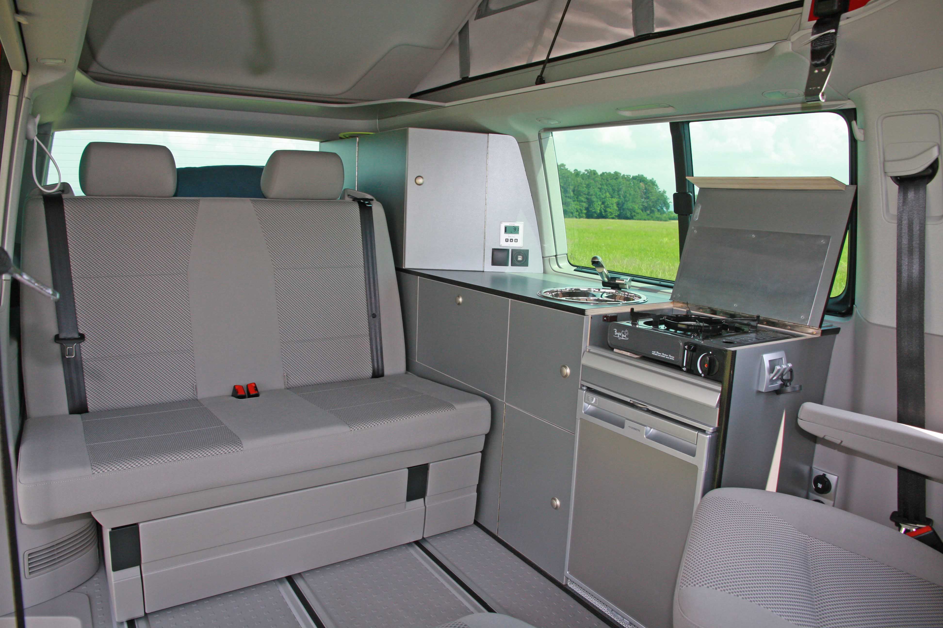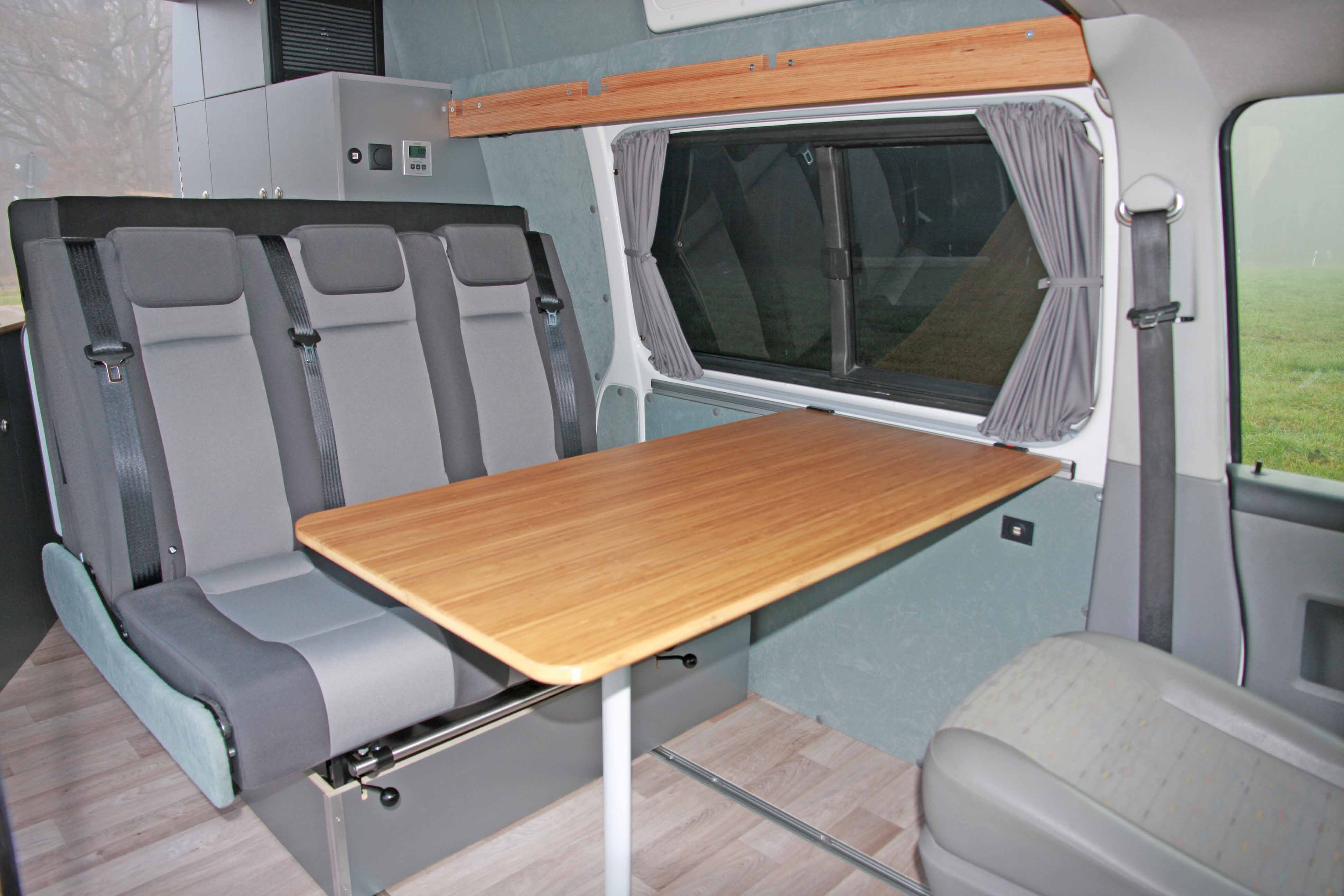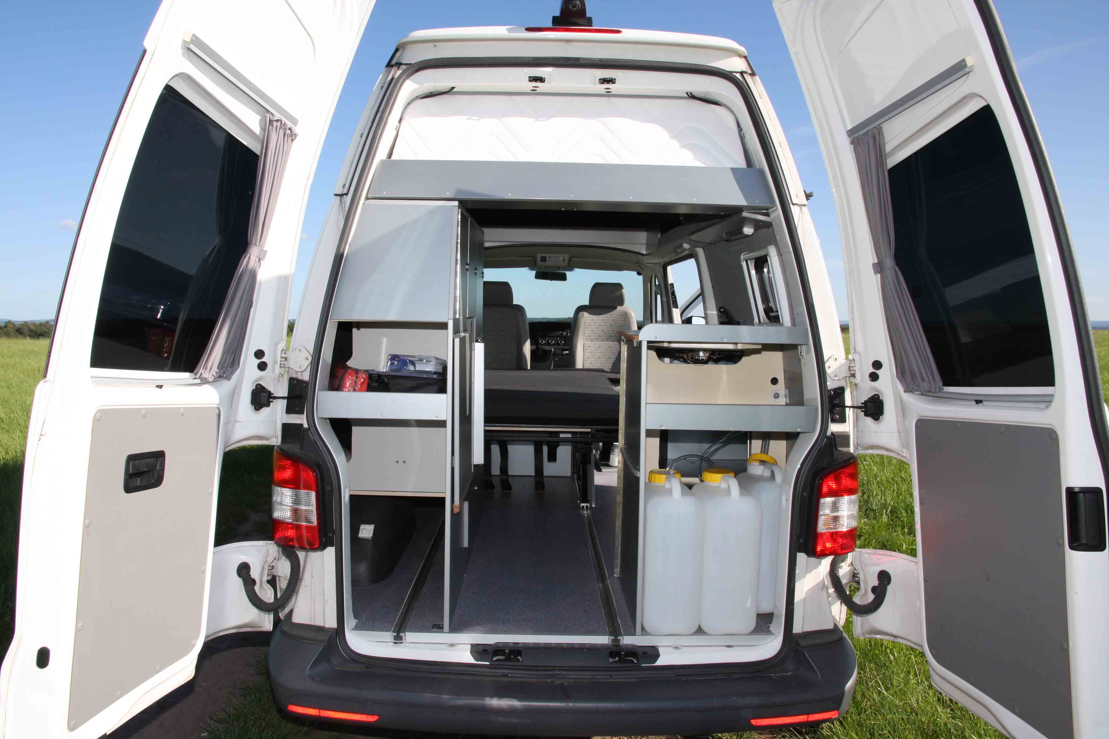 Der VW Bulli ist bereits eine Legende und wird in allen erdenklichen Varianten angeboten. Dennoch bietet er viel Raum für kreative Lösungen. Es ist schon erstaunlich, was alles auf der Größe eines PKWs an Funktionalitäten integriert werden kann.
